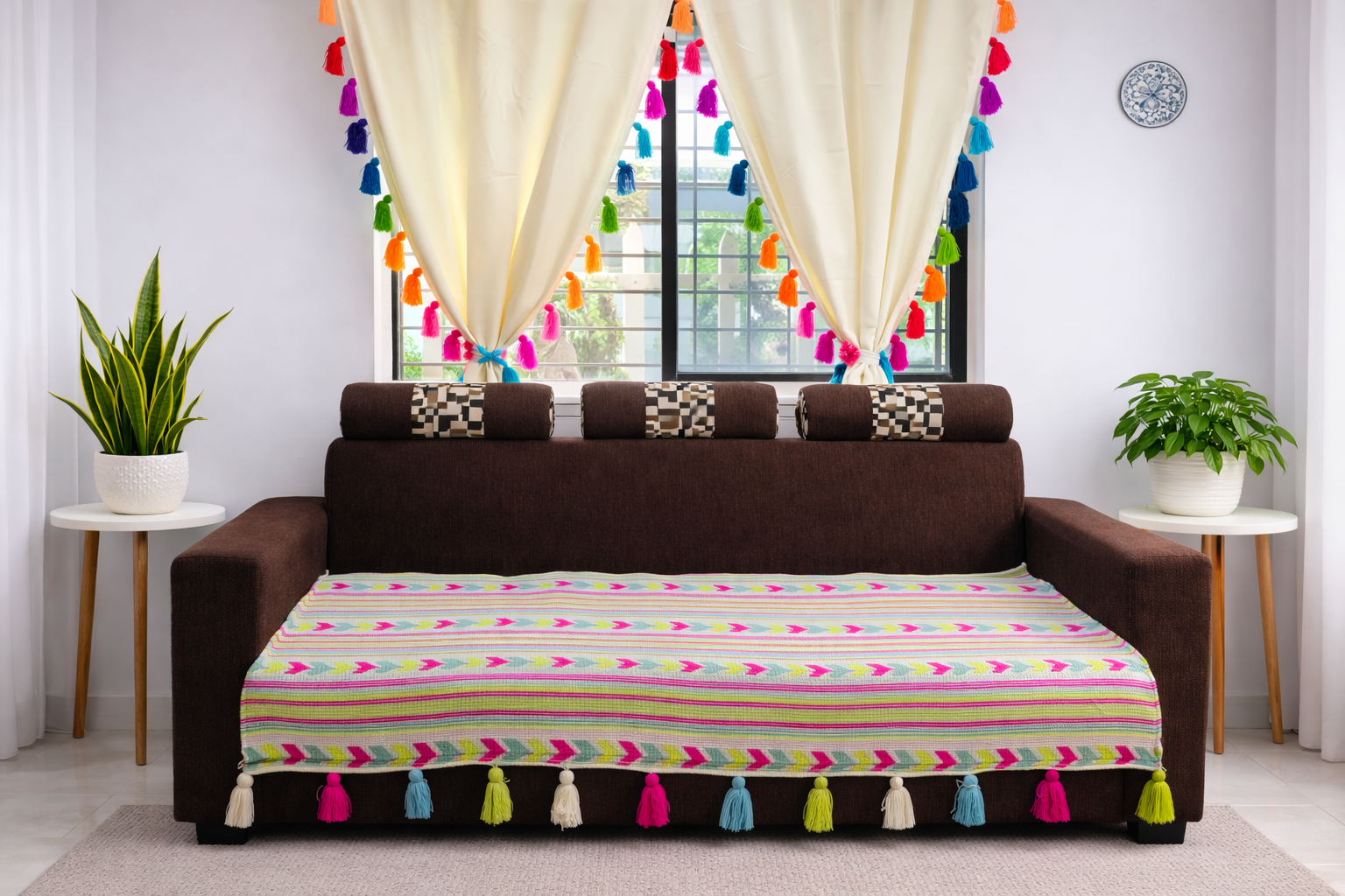 Beautiful multicolour tassels add a vibrant Indian touch, blending perfectly with modern as well as traditional home interiors.