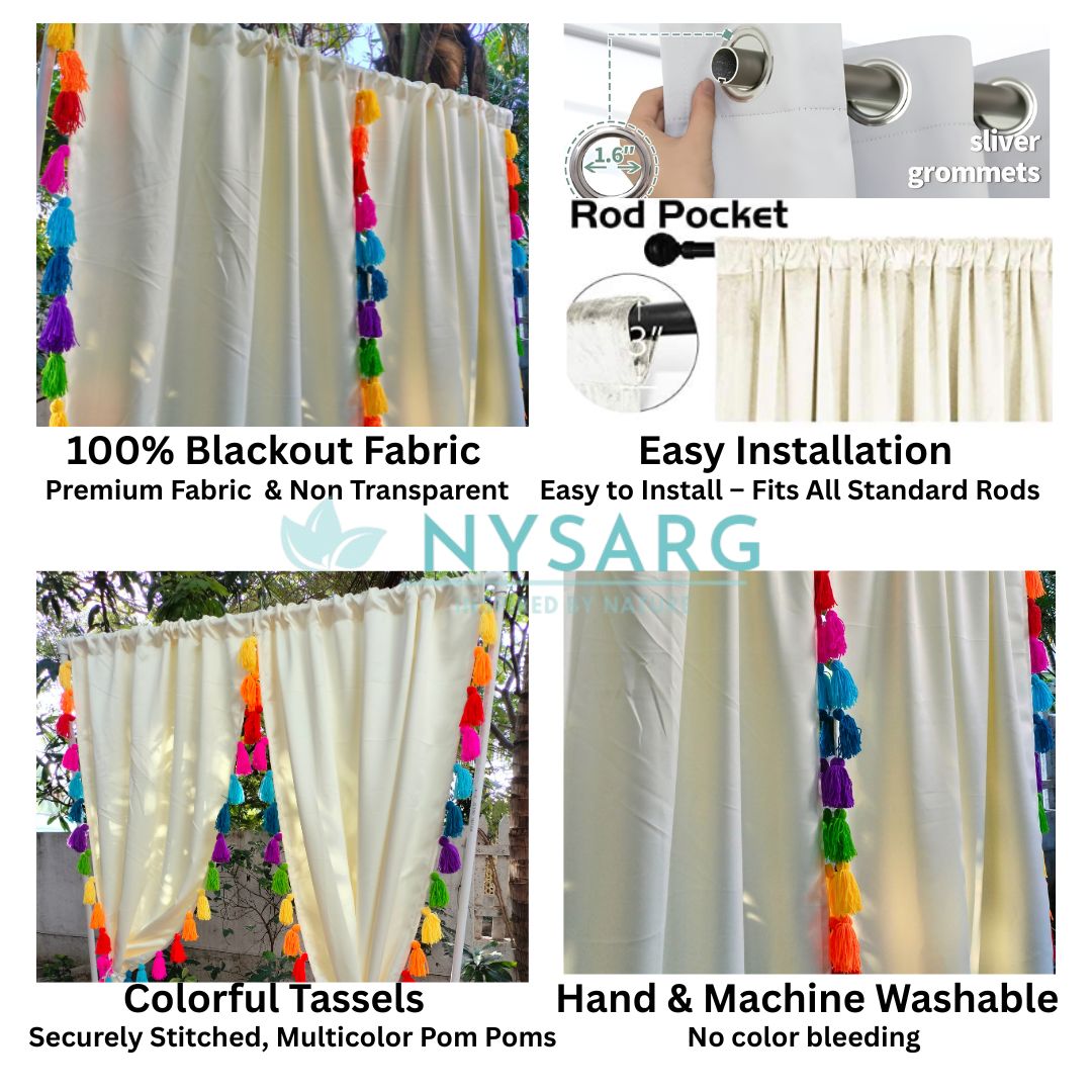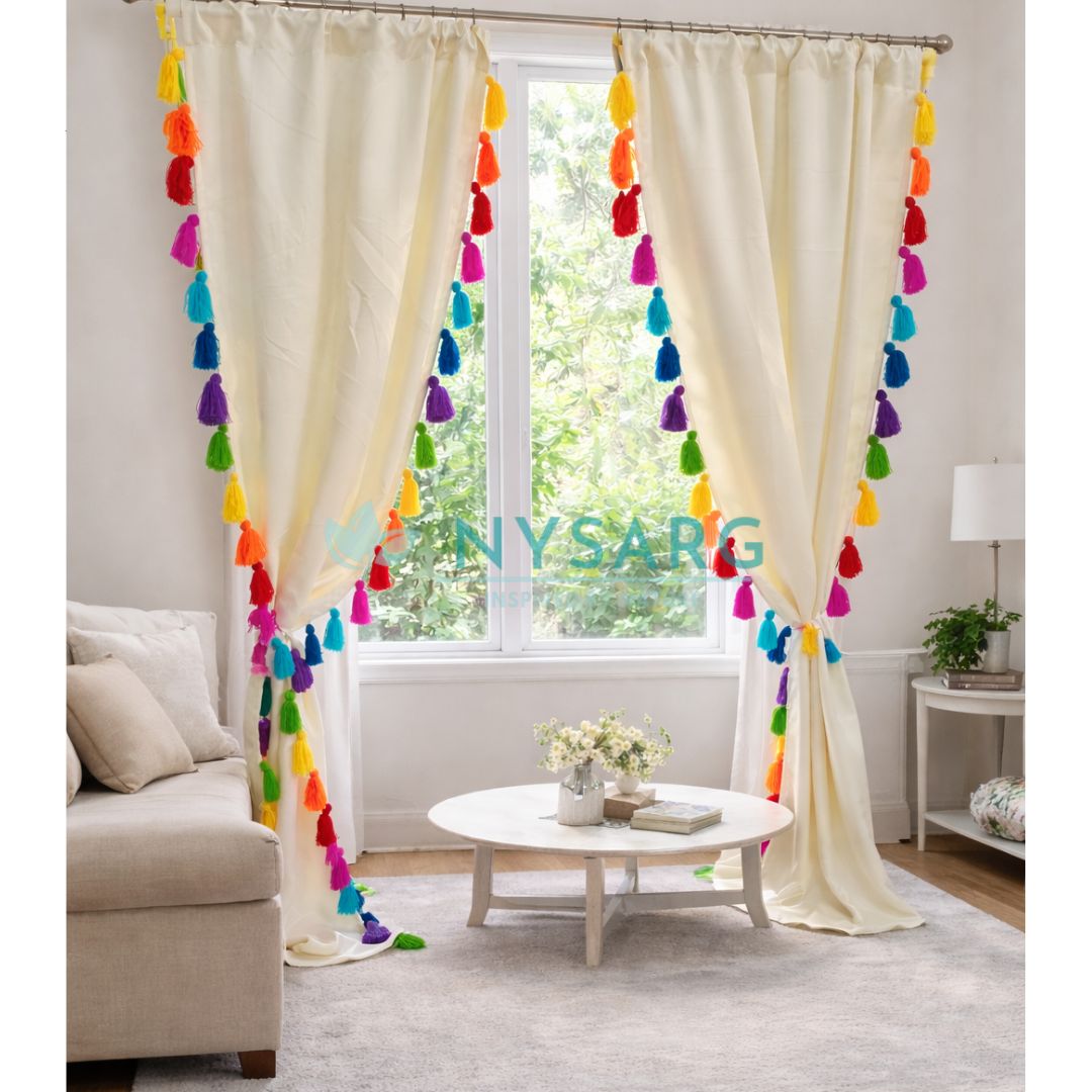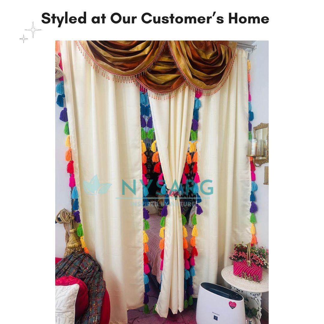 Nysarg Premium Cream Blackout Curtains with Multicolor Tassels – Designed for Modern Indian Homes