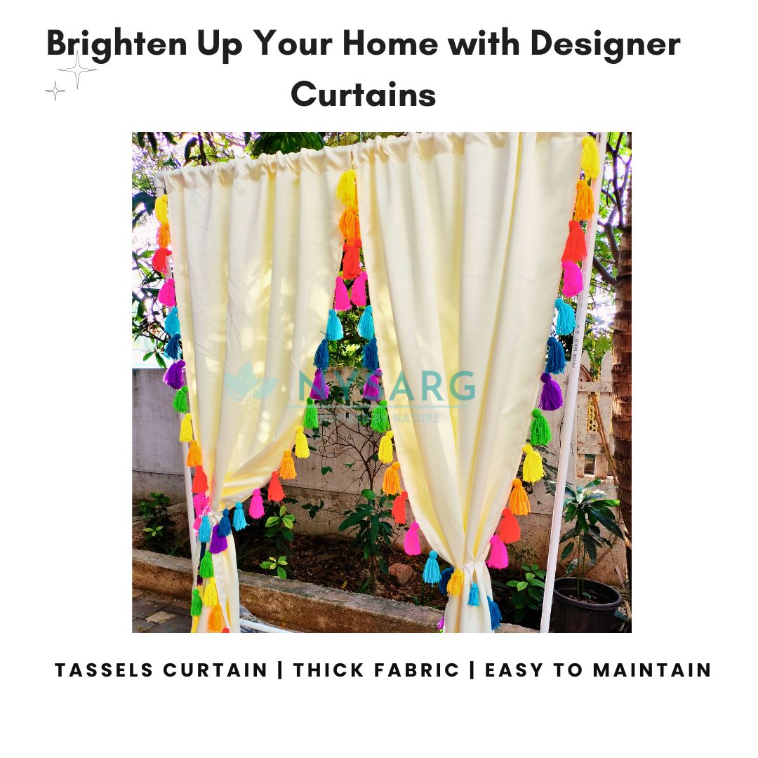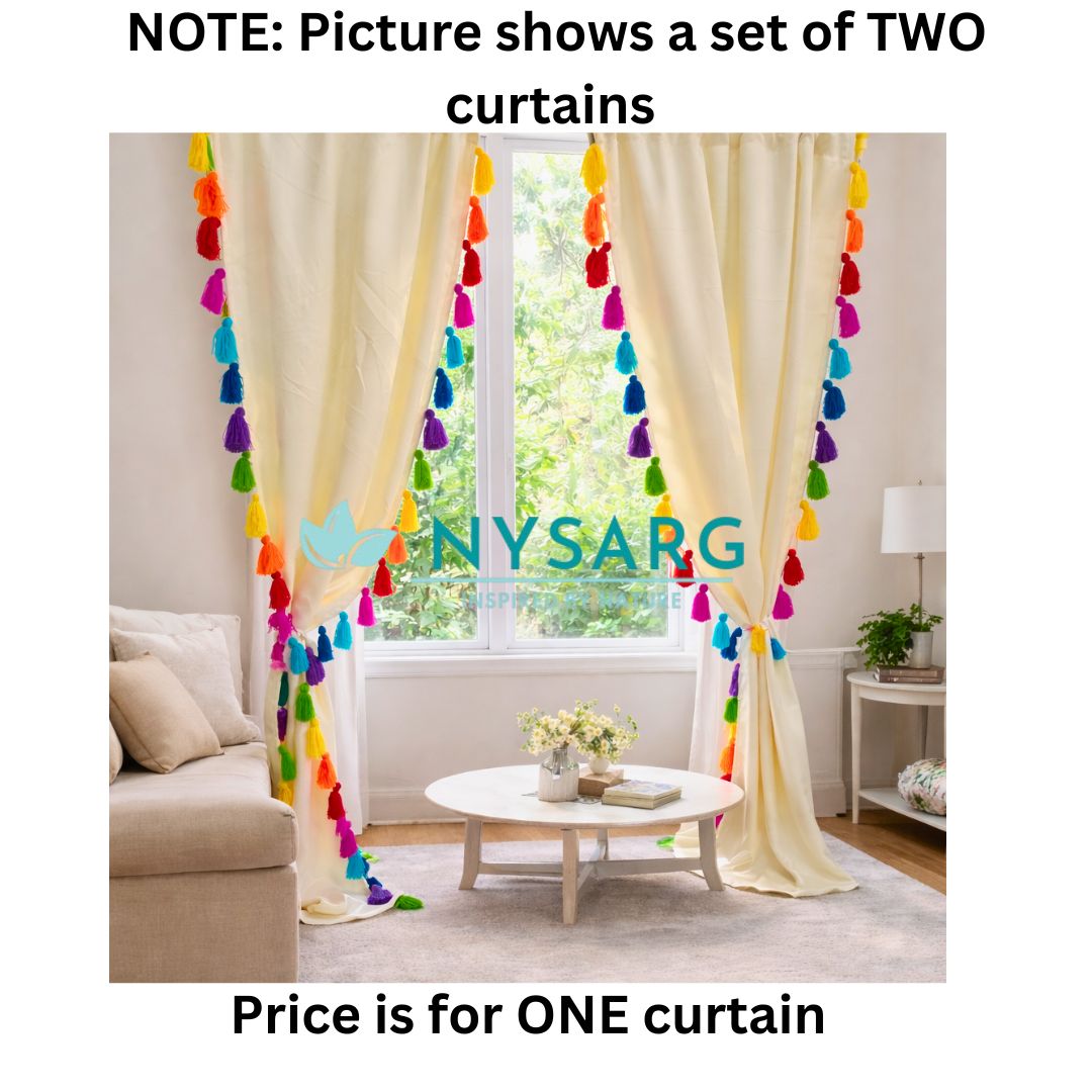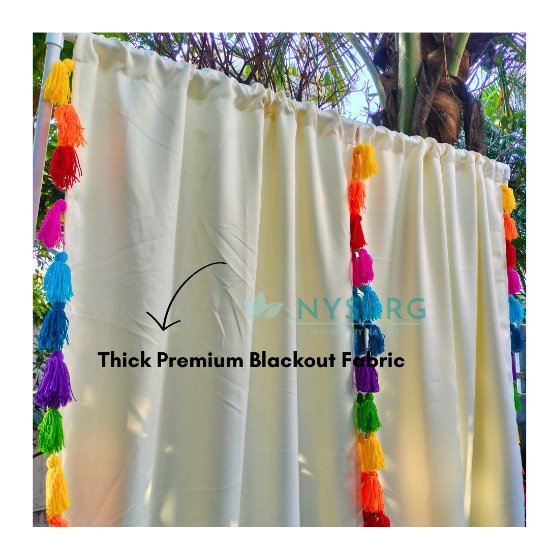 Nysarg Premium Cream Blackout Curtains with Multicolor Tassels – Designed for Modern Indian Homes