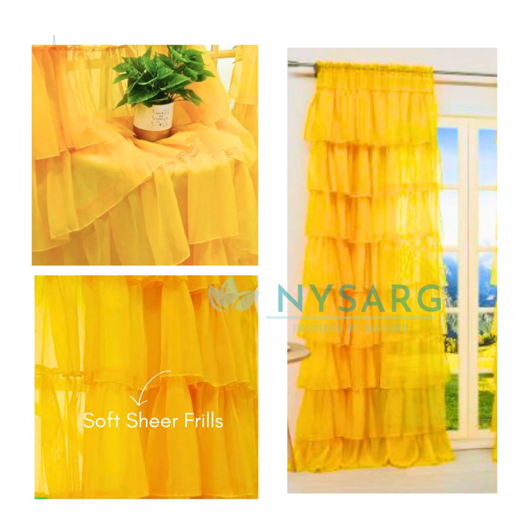 Add a touch of sophistication and charm to your space with this beautiful curtain featuring delicate, multicolored ruffles. The cascading soft sheer frills create a mesmerizing flow, making it a perfect addition to any room that calls for an elegant and cozy atmosphere. - Soft and Durable Fabric with Base Cotton and Soft Fabric Frill