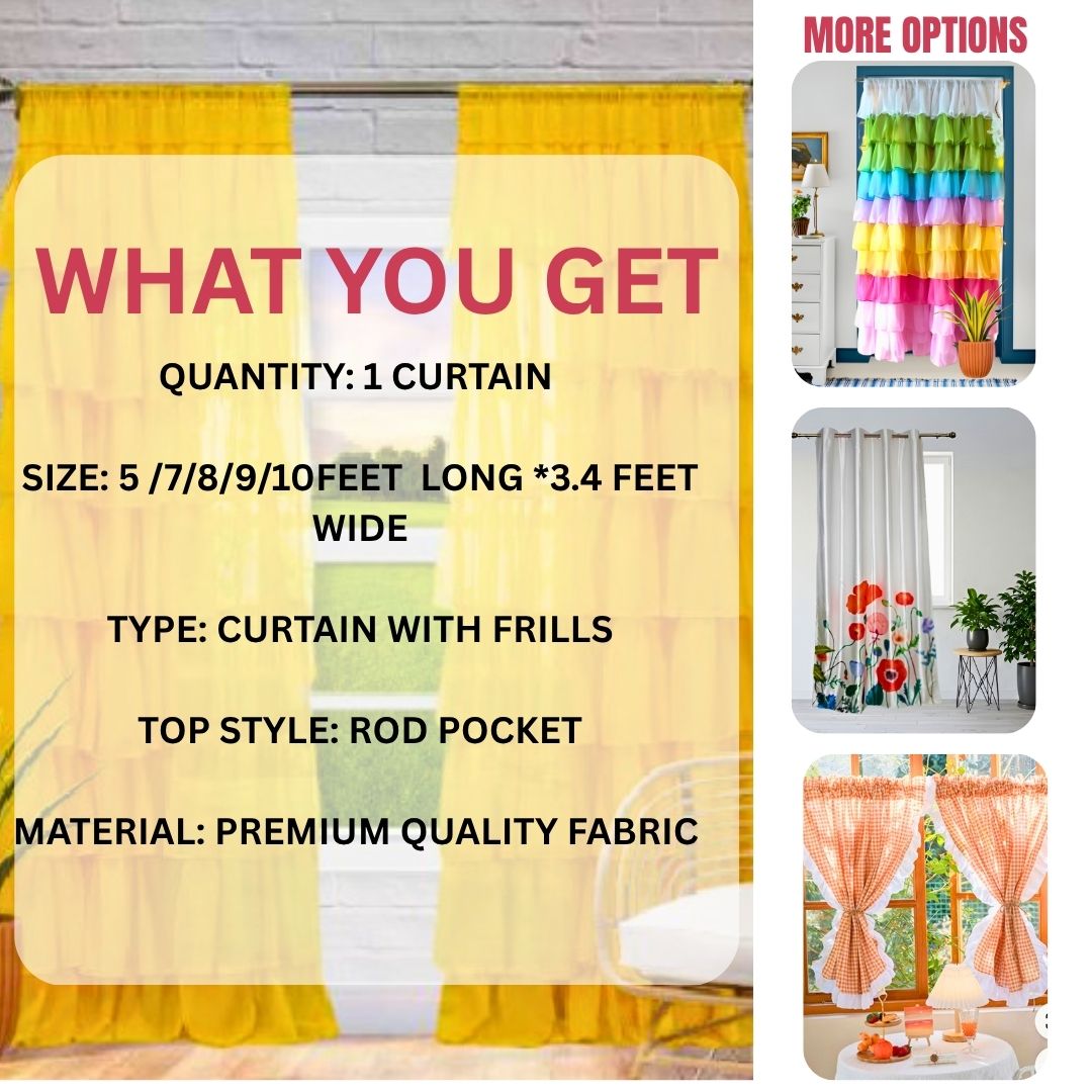 Elevate your space with the charm and elegance of the Multicolor Ruffle Curtain with Soft Sheer Frills β the perfect blend of style, comfort, and convenience.